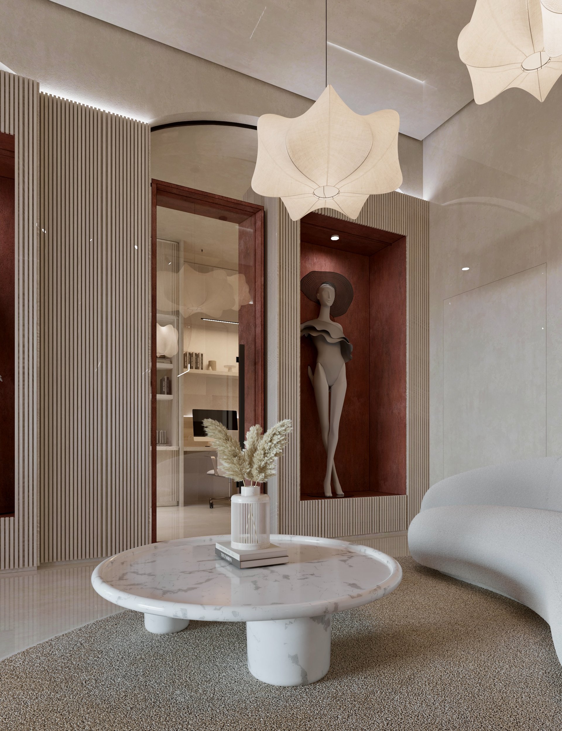 The work was designed in collaboration with Arch. Fabio La Commara, dealing in particular with the interior design, 3d modeling and rendering of the fashion office.