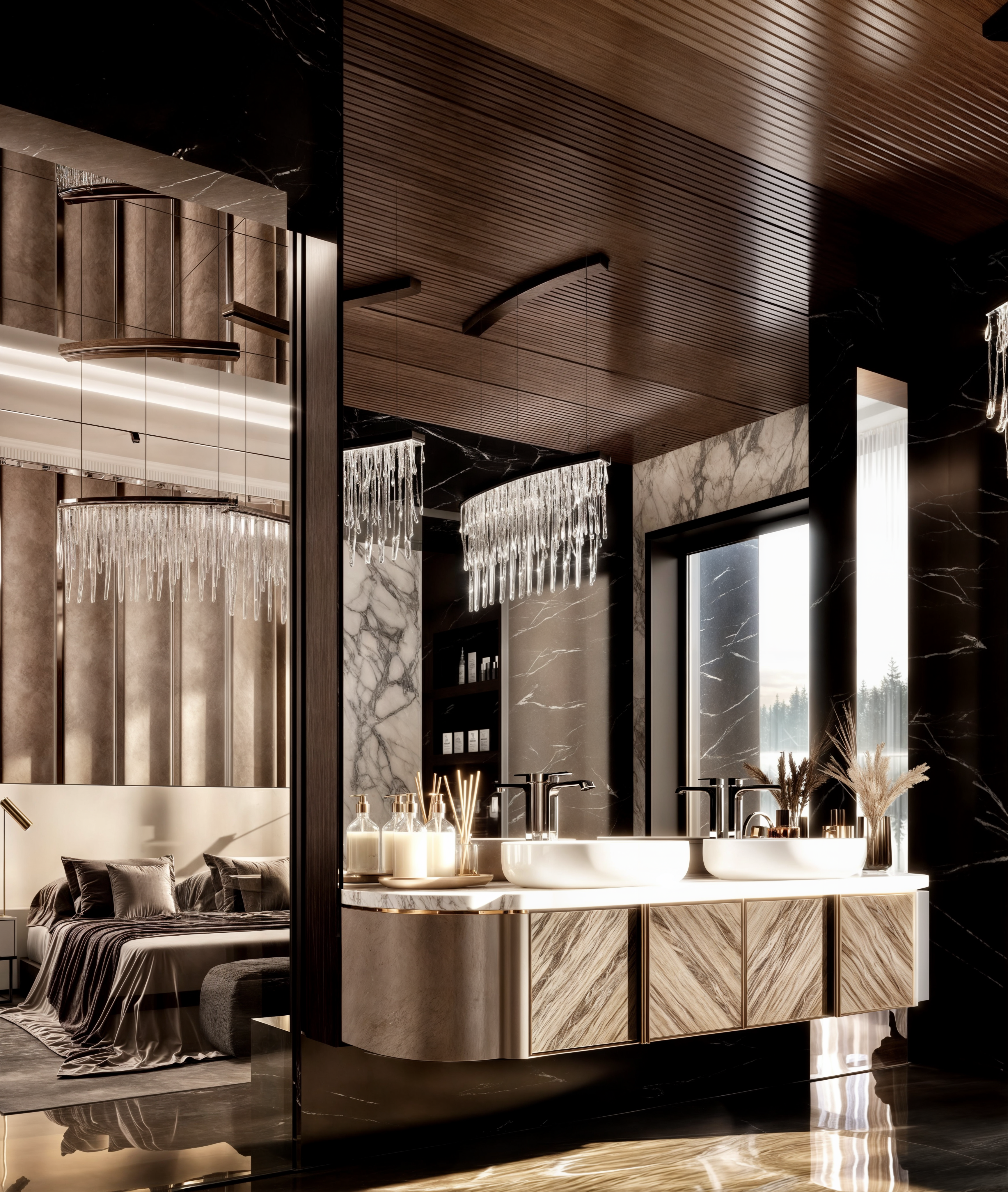 Suite di lusso, chandelier di LUXXU e mobili di Boca do lobo