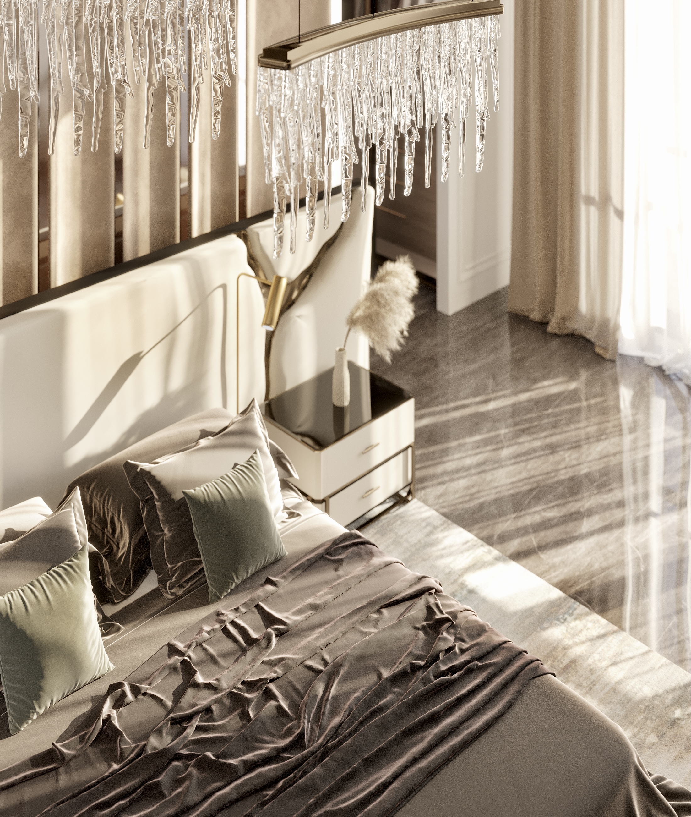Luxury suite using LUXXU chandelier and Boca do Lobo furniture