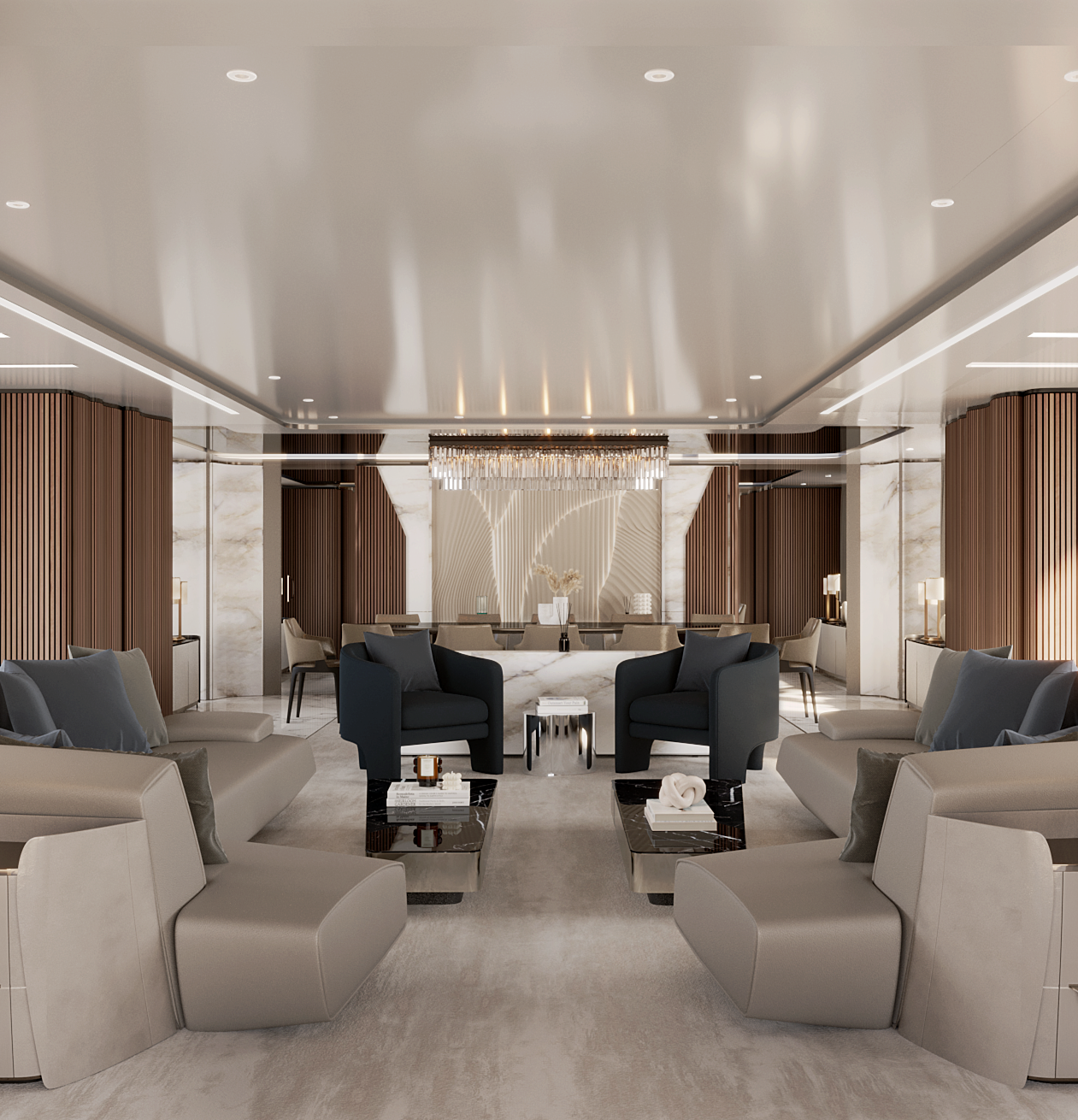 The work was designed for Studio Vafiadis, dealing in particular with the interior design, 3d modeling and rendering of the Yacht's Main Salon.