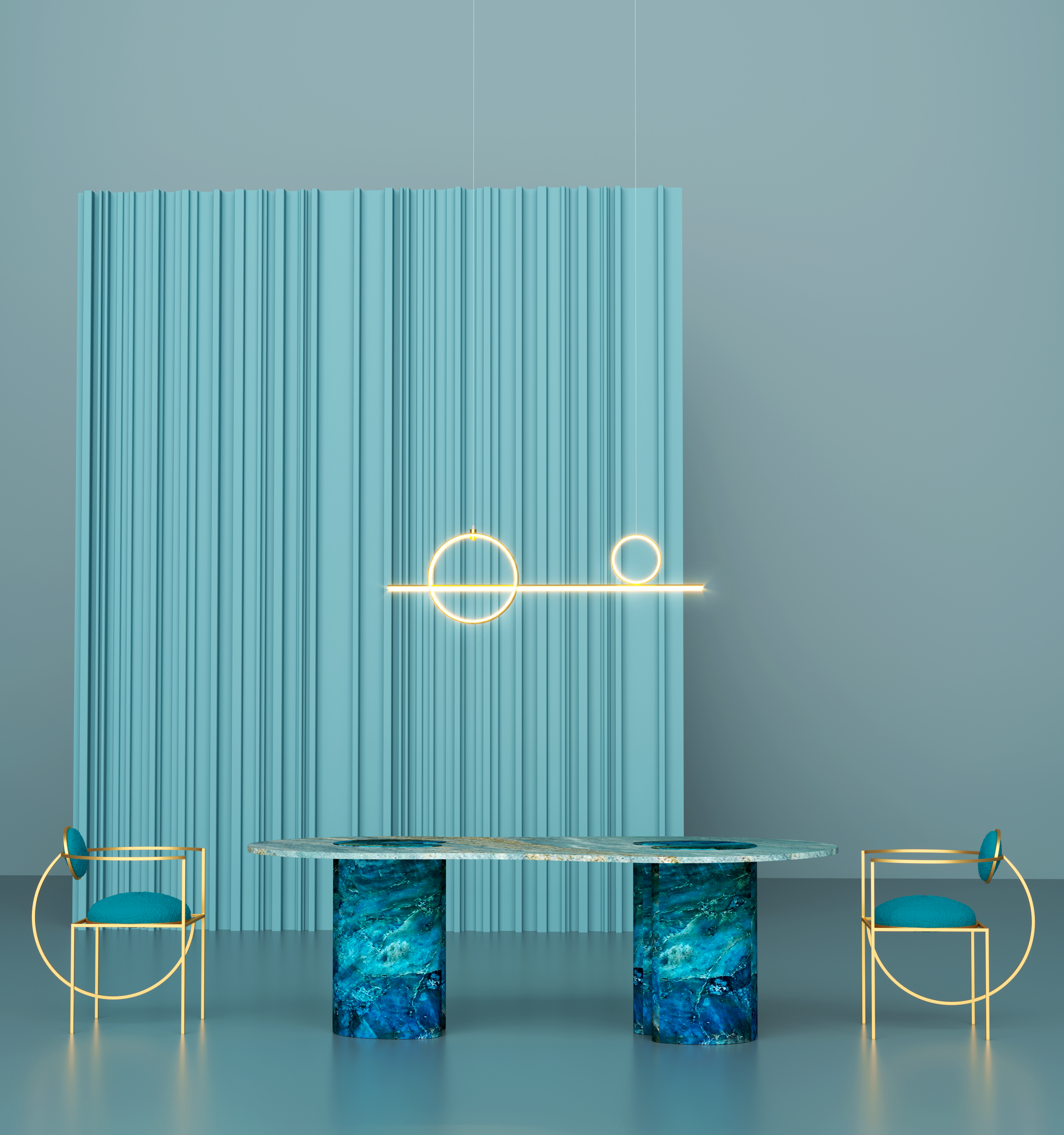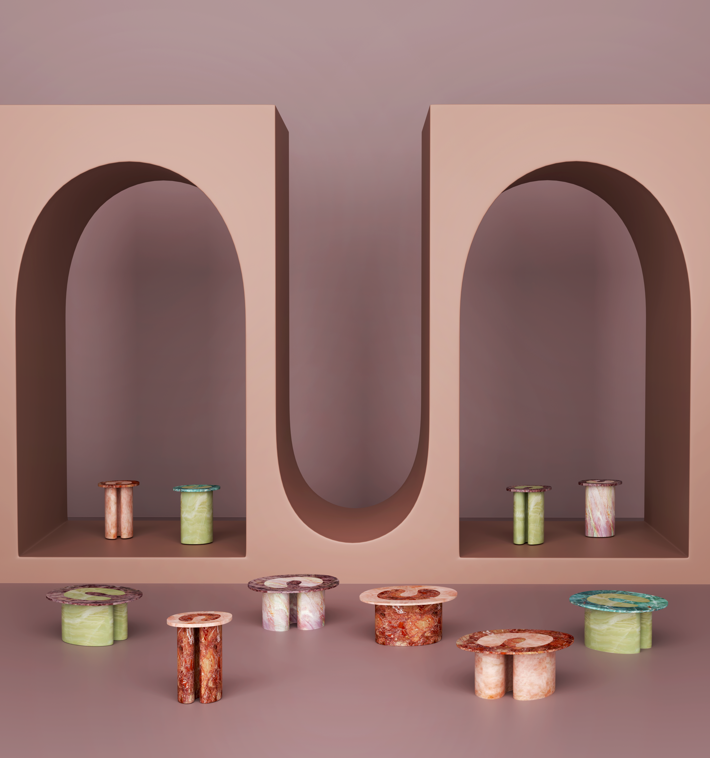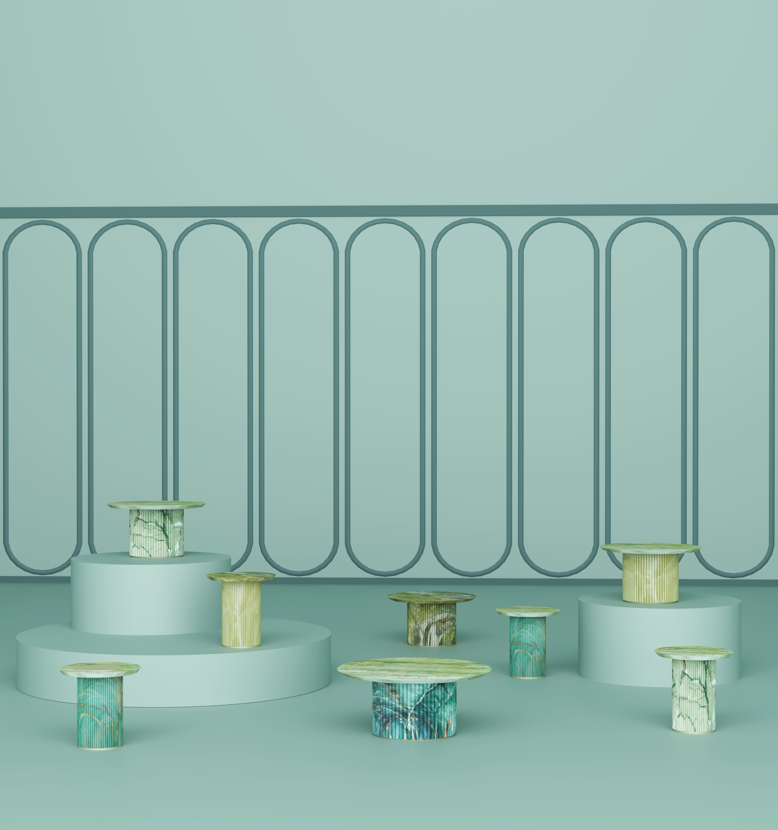 THE COLLECTION HAS AS ITS LIFEBLOOD AND CHAR ACTERIZING FANTASY, JOY, PERSONALITY AND EXCLUSIVITY. THANKS, IN FACT, TO THE UNIQUENESS THAT CHAR ACTERIZES EVERY SINGLE MARBLE SLAB, INEVITABLY DIFFERENT FROM ALL THE OTHERS, EACH PIECE OF FURNITURE BECOMES A REAL UNIQUE PIECE.