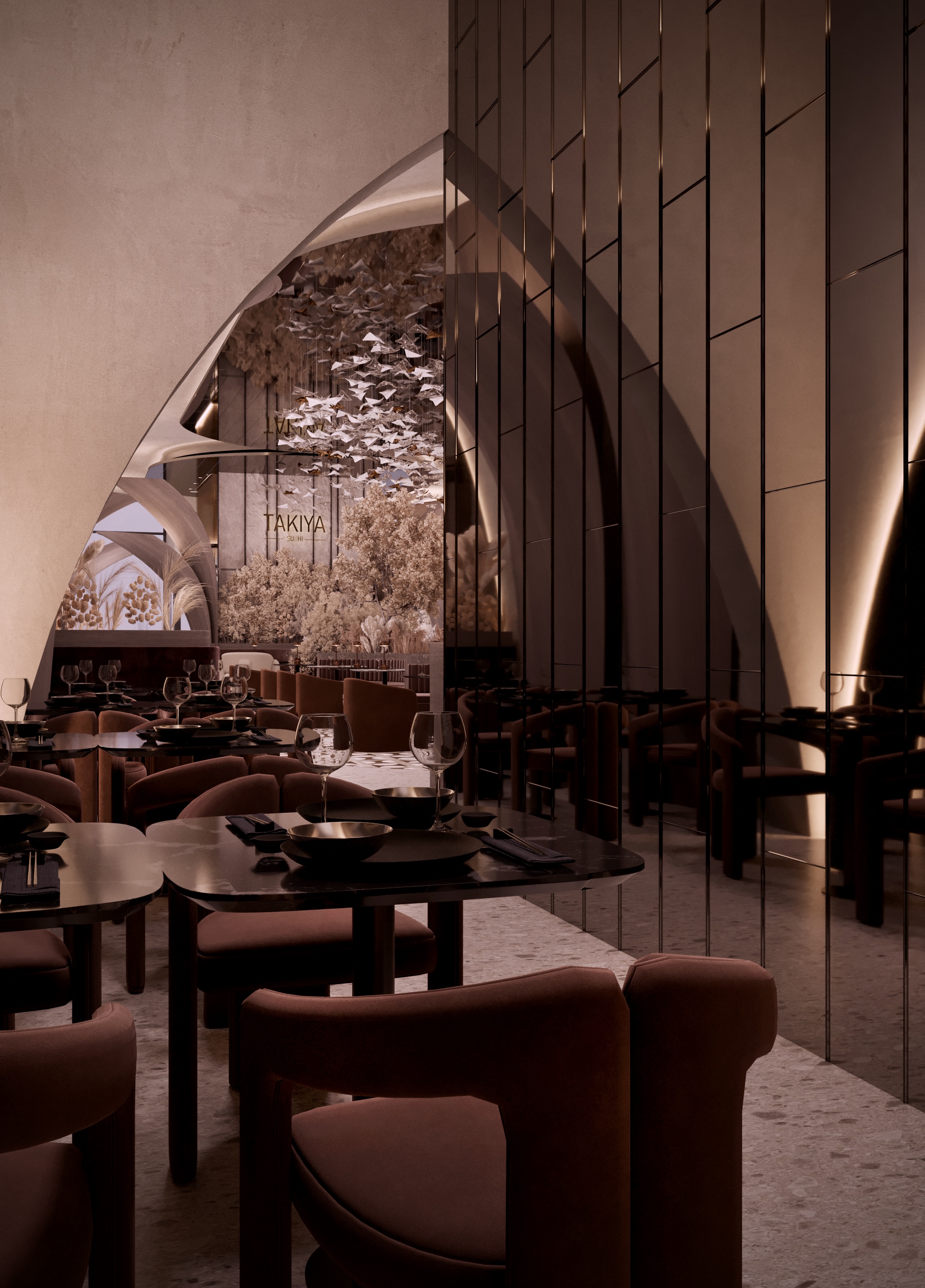 Takiya redefines the concept of contemporary Japanese dining through an atmosphere that fuses fluid architectural forms, tactile materials, and scenographic lighting.